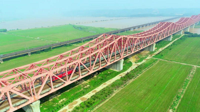 鄭州黃河兩岸郁郁蔥蔥 極目而望,橙紅色的京廣鐵路黃河大橋橫跨南北 在炎黃二帝像的注目下 守護(hù)著一列列火車安全通過