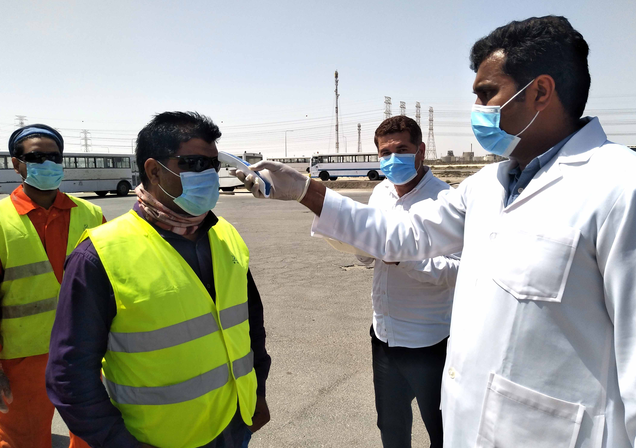 5、中鐵十八局沙特公司給外籍員工測(cè)體溫(徐名峰 攝)