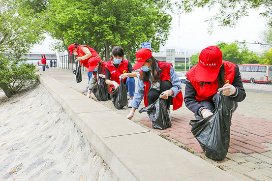 初夏的津城在寒潮的侵襲下冷颼颼的,但寒冷阻擋不了志愿者們樂于奉獻(xiàn)的熱情。她們穿上紅馬甲、戴上一次性手套、拿上垃圾袋,對子牙河河堤路面上的殘花落葉、綠化帶里的煙頭紙屑、樹叢中的樹枝雜物等進(jìn)行清理。她們的到來為子牙河畔注入了暖暖春意。