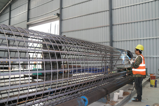 半自動(dòng)滾焊機(jī)鋼筋籠焊接加工(王經(jīng)昆攝)