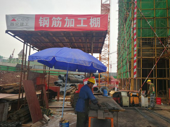 上圖為:規(guī)范有序的鋼筋加工作業(yè)