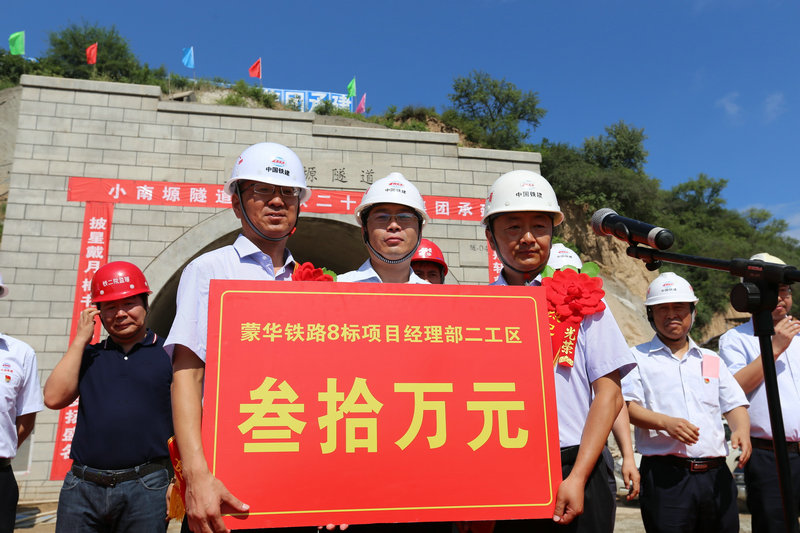 根據(jù)慶典議程安排,首先由8標(biāo)項(xiàng)目部副經(jīng)理王志貴致辭,然后由常務(wù)副經(jīng)理、總工李福成介紹小南塬隧道施工情況。蒙西華中鐵路蒙陜指揮部副總工程師王俊勝宣讀賀電、中鐵二院監(jiān)理公司蒙華鐵路項(xiàng)目部總監(jiān)羅建偉致辭。接下來,8標(biāo)項(xiàng)目部質(zhì)量總監(jiān)王武高宣讀了《關(guān)于對(duì)小南塬隧道貫通進(jìn)行獎(jiǎng)勵(lì)的決定》、副經(jīng)理呂劍宣讀了《關(guān)于表彰小南塬隧道施工“優(yōu)秀作業(yè)隊(duì)”、“優(yōu)秀勞務(wù)隊(duì)”的決定》,承建小南塬隧道的蒙華二工區(qū)獲獎(jiǎng)30萬元。中鐵二十一局集團(tuán)公司副總經(jīng)理、項(xiàng)目經(jīng)理馮建軍在講話中,對(duì)小南塬隧道順利貫通表示熱烈祝賀,對(duì)在施工中作出突出貢獻(xiàn)的二工區(qū)員工表示誠(chéng)摯的感謝,希望參建員工繼續(xù)努力,為奪取蒙華鐵路施工的最后勝利再立新功。