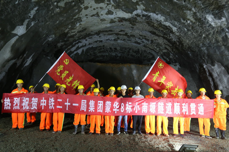 圖為建設(shè)者在隧道貫通點(diǎn)合影。