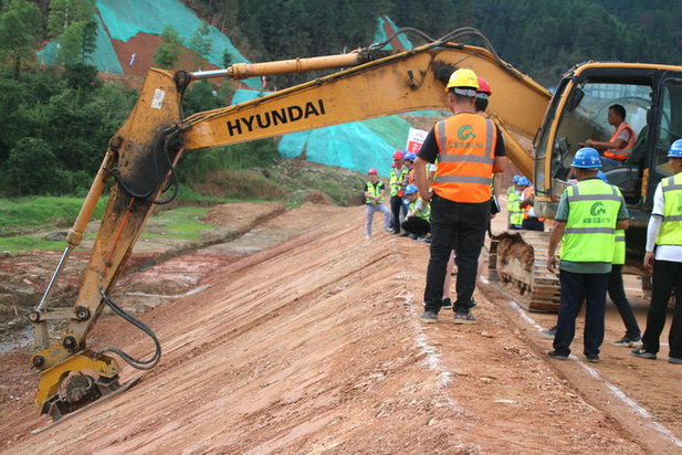在高填方施工中,他們使用了液壓平板夯。使用這種液壓平板夯的優(yōu)點,主要是解決了過去高邊坡回填過程中,邊坡不易夯實的難題。使用液壓平板夯后,高填方邊坡夯實效果好,平板通過震動打擊,產(chǎn)生的瞬間打擊力可以達到12噸,對邊坡斜坡部分的壓實具有其他設備不可替代的作用。而且夯實后的邊坡光滑平順,不易被雨水沖壞。