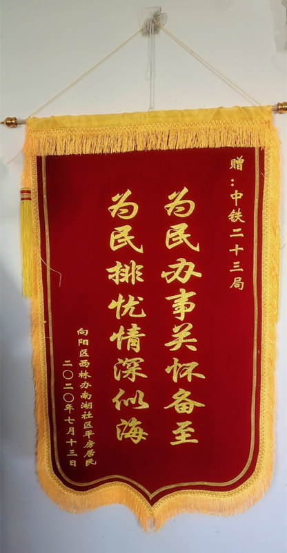 近日,中鐵二十三局二公司哈佳鐵路項(xiàng)目經(jīng)理部的榮譽(yù)墻上新添了一面錦旗,上寫 “為民辦事關(guān)懷備至  為民排憂情深似海”。錦旗是佳木斯市向陽區(qū)西林辦南湖社區(qū)鄒書記和社區(qū)老人送來的,表達(dá)了社區(qū)、社區(qū)居民對項(xiàng)目部伸援助之手、解百姓之憂的感激之情。