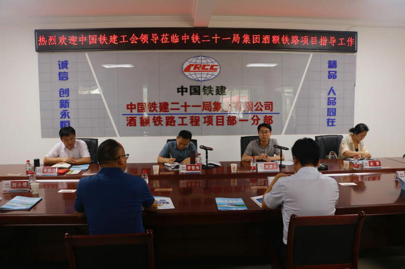 7月22日,中國(guó)鐵建股份公司工會(huì)工作部副部長(zhǎng)李智偉、財(cái)務(wù)保障處處長(zhǎng)張曉川一行來到中鐵二十一局四公司酒額鐵路項(xiàng)目部開展偏遠(yuǎn)地區(qū)艱苦項(xiàng)目建家建線重點(diǎn)幫扶暨慰問活動(dòng),并對(duì)項(xiàng)目施工生產(chǎn)和建家建線情況進(jìn)行調(diào)研。集團(tuán)公司黨委副書記、工會(huì)主席田愛平,工會(huì)工作部部長(zhǎng)余霞,四公司工會(huì)主席段榮福等陪同。