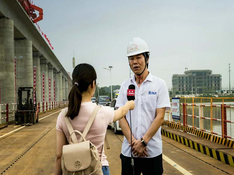 (三局線橋黃黃項(xiàng)目負(fù)責(zé)人張飛虎接受黃岡電視臺(tái)采訪)