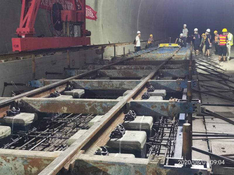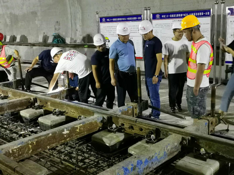 為了確保無砟軌道道床按期施工,中鐵二十一局四公司玉磨鐵路項目部邀請隧道第三方實體檢測、線下工程與站后四電工程接口工作及工務(wù)段提前介入,在順利完成消缺工作、做好施工前所有準(zhǔn)備工作后,無砟軌道道床于8月1日正式開始施工。滇南鐵路墨江段建設(shè)指揮部、長沙中大監(jiān)理等近10人前往石頭寨隧道無砟軌道施工現(xiàn)場進行指導(dǎo)。