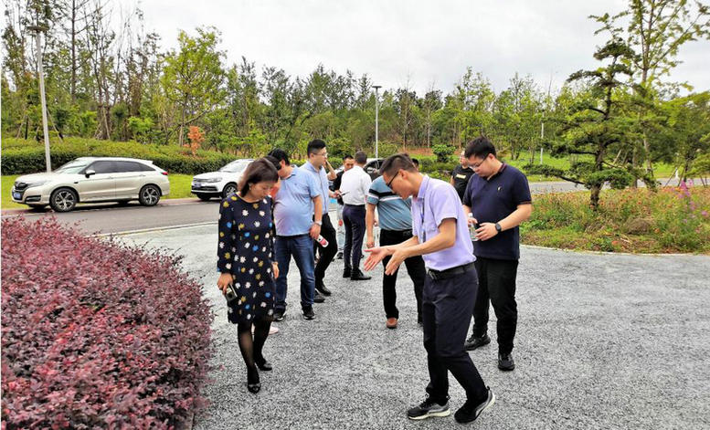 在月亮湖公園,調(diào)研組首先聽取了中交四公局項目負責(zé)人關(guān)于工程總體規(guī)劃、運作模式、設(shè)計理念等相關(guān)情況的介紹,并實地觀看了生態(tài)砂基透水磚快速濾水的現(xiàn)場試驗。隨后,通過看展板、聽匯報和實地踏勘,調(diào)研組對兩湖一河PPP項目入湖支流氨氮磷去除、生態(tài)法進行末端處理、采用典型設(shè)施實現(xiàn)徑流總量控制、利用技術(shù)手段開展水質(zhì)在線監(jiān)測等有關(guān)海綿城市建設(shè)情況有了較為直觀和深入的了解。
