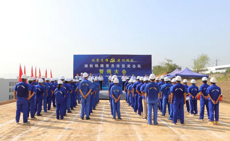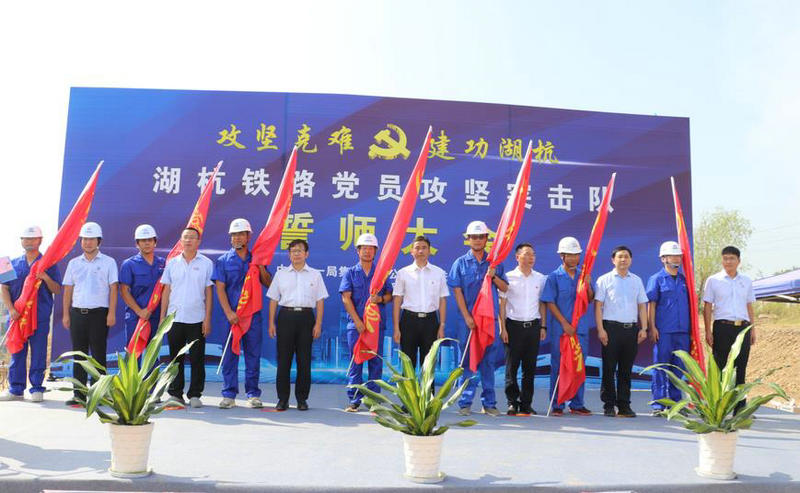 杭黃鐵路公司(滬昆客專浙江公司)黨委副書記、紀(jì)委書記丁玉強(qiáng)調(diào),“攻堅(jiān)克難,建功湖杭”黨員攻堅(jiān)突擊隊(duì)誓師活動(dòng),是項(xiàng)目今年黨建、團(tuán)建創(chuàng)新工作的一個(gè)重要載體,是以構(gòu)建項(xiàng)目建設(shè)和黨建融合的一體化格局豐富黨建內(nèi)涵、深化“黨建+”品牌的重要抓手,是打響全線黨員聯(lián)合攻堅(jiān)、助推項(xiàng)目主戰(zhàn)場(chǎng)的深入實(shí)踐,也是加強(qiáng)和深化企業(yè)黨建工作,充分調(diào)動(dòng)廣大黨員、團(tuán)員青年立足崗位、扎根一線、攻堅(jiān)克難的一個(gè)重要方式,有利于加強(qiáng)湖杭鐵路全線參建單位溝通交流、黨建工作資源的整合、黨建活動(dòng)的開展,切實(shí)為湖杭鐵路施工生產(chǎn)凝心聚力、保駕護(hù)航。
