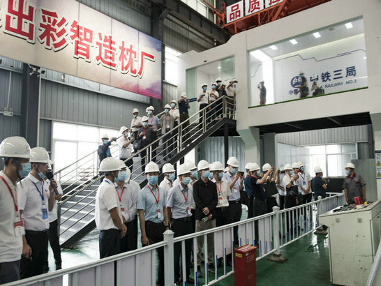 觀摩團(tuán)一行人現(xiàn)場(chǎng)參觀了自動(dòng)化軌枕生產(chǎn)線