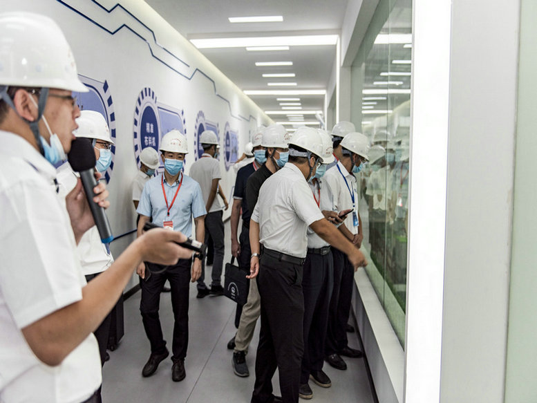 觀摩團(tuán)一行近距離觀看智能化控制生產(chǎn)線