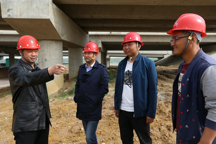項目班子成員現(xiàn)場研究附屬工程施工方案 滁淮3標認真貫徹落實公司“建精品工程、開拓安徽建筑市場”的發(fā)展戰(zhàn)略,工程進度、安全質(zhì)量始終領跑全線,2016年、2017年連續(xù)兩年榮獲安徽省交通廳信譽評價“AA”級,全線獲部級工法3項、省級工法4項、科技進步獎2項、實用新專利10項。