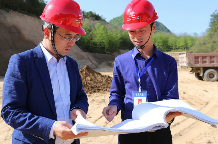 時任項目經(jīng)理刁小利(左)、項目總工雒曉亮(右)在現(xiàn)場指導施工