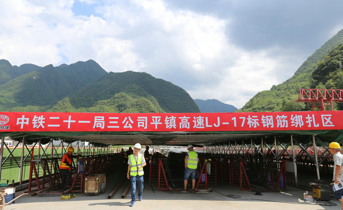 由中鐵二十一局三公司平鎮(zhèn)項目承建的平鎮(zhèn)高速LJ-17標(biāo)段,位于陜西鎮(zhèn)坪縣鐘寶鎮(zhèn)境內(nèi),全長4.2公里。主要工程為三橋一隧一路基一互通,即鐘寶特大橋、鐘寶互通立交、羅漢宮特大橋、長沙壩隧道、剪刀峰特大橋。其中橋梁主線全長3375.9米、互通匝道橋891米。制梁場建在路基上,占地52畝,共預(yù)制箱梁1307片,每天生產(chǎn)箱梁5至6片,是平鎮(zhèn)高速全線和公司最大的制梁場。