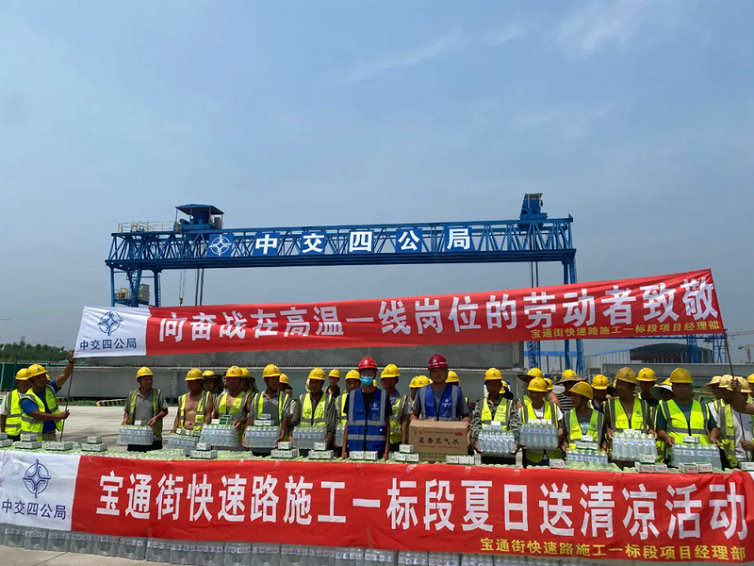 6月30日,中交四公局第二建筑分公司寶通街快速路工程施工一標段項目組織開展夏季“送清涼”慰問活動。