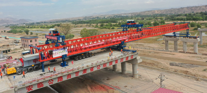 圖為架橋機(jī)和運(yùn)梁炮車就位項(xiàng)目辦副主任蔣超在架梁儀式中說:“安臨項(xiàng)目是省交通廳、省公航旅集團(tuán)重點(diǎn)建設(shè)項(xiàng)目,也是甘肅省路橋公路投資有限公司重點(diǎn)關(guān)注的項(xiàng)目,一標(biāo)段跨兩市兩縣,又處于東鄉(xiāng)縣洮河經(jīng)濟(jì)帶內(nèi),受到了臨夏州、東鄉(xiāng)縣各級政府的高度關(guān)注。洮河大橋作為連接臨洮縣、東鄉(xiāng)縣兩個少數(shù)民族區(qū)域的重要通道,它的建設(shè)意義十分重大。希望一標(biāo)項(xiàng)目部繼續(xù)貫徹安全第一的方針,確保施工安全,嚴(yán)格按照標(biāo)準(zhǔn)化要求,爭創(chuàng)優(yōu)質(zhì)工程,全面總結(jié)波紋鋼腹板鋼混組合梁施工工藝,形成創(chuàng)新科技成果,確保項(xiàng)目如期建成。”