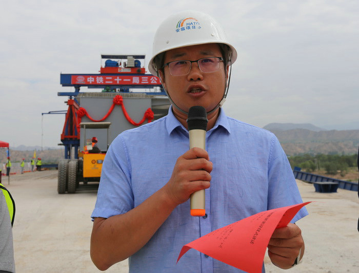 駐地辦總監(jiān)喬利祥在架梁儀式上講話