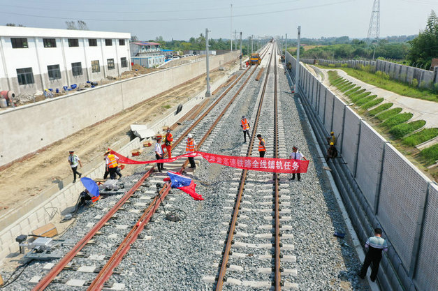 黃黃高速鐵路全線鋪軌告捷該公司自進(jìn)場(chǎng)以來,項(xiàng)目部嚴(yán)格按照武九客專湖北公司總體目標(biāo),落實(shí)公司安全生產(chǎn)要求,精心組織,精準(zhǔn)施作。在鋪軌、架梁、制枕等多個(gè)專業(yè)不斷努力,加強(qiáng)自身管理,不斷探索創(chuàng)新,進(jìn)行信息化管控,實(shí)現(xiàn)智能建造。并成功打造出信息化與自動(dòng)化深度融合的國內(nèi)乃至全世界最先進(jìn)的雙塊式軌枕制造廠。鋪軌期間,廣大參建員工克服種種不利因素,多措并舉,以黃黃高鐵浠水南站為鋪軌中心,采用兩臺(tái)WZ-500型長(zhǎng)鋼軌鋪設(shè)機(jī)組,實(shí)現(xiàn)了6月19日首鋪的節(jié)點(diǎn)目標(biāo)。全體參建將士發(fā)揚(yáng)“凝心聚力、攻堅(jiān)克難”的精神,在做好疫情常態(tài)化防控的同時(shí),以鋪軌節(jié)點(diǎn)目標(biāo)為導(dǎo)向,風(fēng)雨兼程,戰(zhàn)汛情斗酷暑、晝夜奮戰(zhàn)、攻克多項(xiàng)技術(shù)難關(guān),不斷刷新鋪軌進(jìn)程。于8月9日完成黃黃高鐵與安九高鐵黃梅東站順利接軌,至9月1日順利完成全線鋪軌任務(wù)。