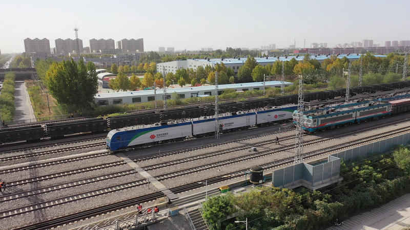 圖為兩萬(wàn)噸重載列車在肅寧北站場(chǎng)等待發(fā)車