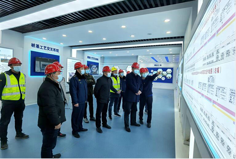 楊金國(guó)一行參觀了項(xiàng)目部產(chǎn)業(yè)工人培訓(xùn)中心,了解了項(xiàng)目施工整體計(jì)劃以及建設(shè)管理重難點(diǎn),對(duì)施工安全體驗(yàn)式教學(xué)及墩柱、樁基、箱梁等工藝交互系統(tǒng)的實(shí)用程度及建設(shè)情況表示高度認(rèn)可。他強(qiáng)調(diào),要發(fā)揮好產(chǎn)業(yè)工人培訓(xùn)中心的示范作用,積極探索和創(chuàng)新培訓(xùn)方式,提高一線作業(yè)人員的技能素質(zhì),為工程高質(zhì)量建設(shè)注入新活力。同時(shí)對(duì)項(xiàng)目部后續(xù)建設(shè)提出四點(diǎn)寶貴意見(jiàn),一是繼續(xù)加大產(chǎn)業(yè)工人培訓(xùn)中心的使用力度,不斷加強(qiáng)產(chǎn)業(yè)工人技能水平及安全意識(shí);二是要抓好安全質(zhì)量工作,落實(shí)各項(xiàng)安全質(zhì)量管理措施,加強(qiáng)班組班前教育、技術(shù)交底管理,做到不留隱患;三是持續(xù)抓好疫情常態(tài)化防控,嚴(yán)格做好返鄉(xiāng)返崗人員排查檢測(cè),確保零感染;四是要繼續(xù)在精細(xì)化施工、交通導(dǎo)改、施工組織等方面謀求突破,在建設(shè)過(guò)程中及時(shí)總結(jié)經(jīng)驗(yàn)成果,打造滿意型、精品級(jí)工程。