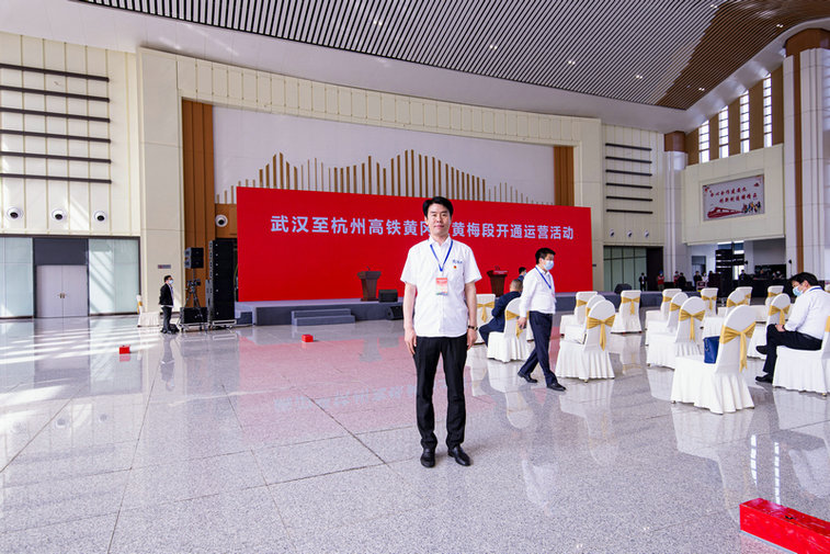 中鐵三局線橋公司參建黃黃高鐵員工代表在黃梅東站開(kāi)通運(yùn)營(yíng)活動(dòng)主會(huì)場(chǎng)