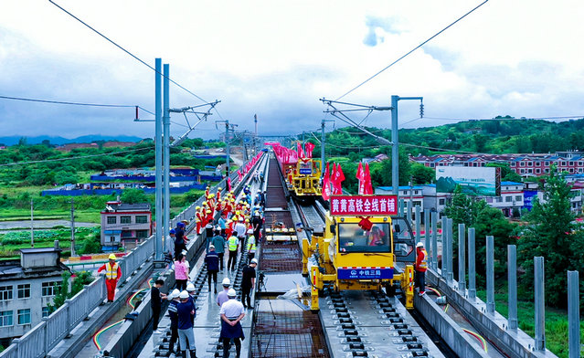 2021年7月10日鋪軌黃黃高鐵控制性工程之一的蘄河特大橋