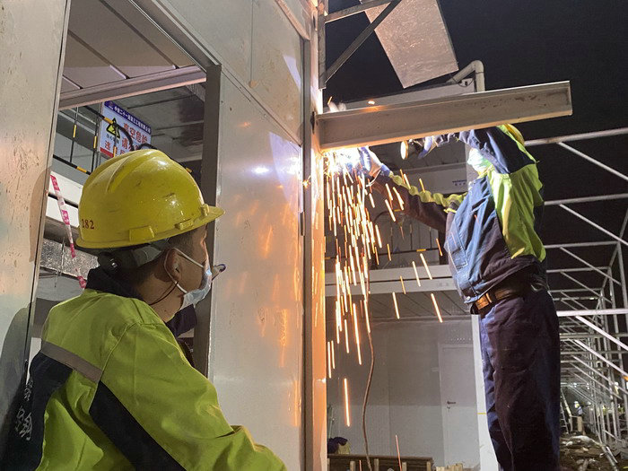 為確保交付節(jié)點(diǎn),現(xiàn)場(chǎng)每日召開專題會(huì),倒排工期計(jì)劃協(xié)調(diào)解決現(xiàn)場(chǎng)物料采購難、穿插施工多、安裝任務(wù)重等問題,每天更新進(jìn)度,調(diào)整方案,全員兩班倒, 24小時(shí)“疫”線堅(jiān)守,從晨光熹微到夜色深沉。