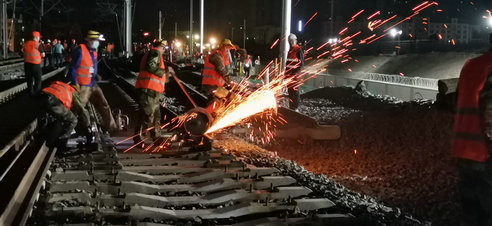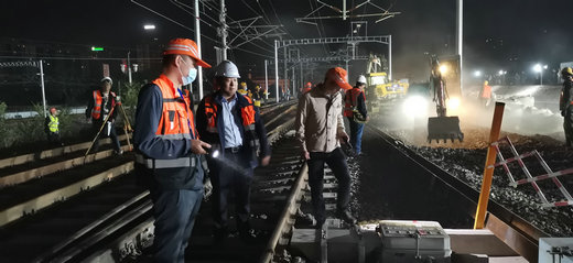 0點37分車站調(diào)度所施工命令下達后,由施工總指揮下達進網(wǎng)施工指示,現(xiàn)場施工人員嚴格按照方案及交底有序開展施工,拆除防護柵欄150米,接觸網(wǎng)斷電、拆除既有線路93米、破底清篩道床、道岔縱移98米、線路上道渣、線路起道、線路搗固、電務(wù)調(diào)試、接觸網(wǎng)調(diào)整等工序有條不紊地開展,機械聲、工人作業(yè)號子聲此起彼伏。每道工序銜接有力,精準無誤。經(jīng)過213分鐘奮戰(zhàn)4點10分提前開通,在規(guī)定時間順利完成了239#道岔鋪設(shè)施工任務(wù)。為您推薦