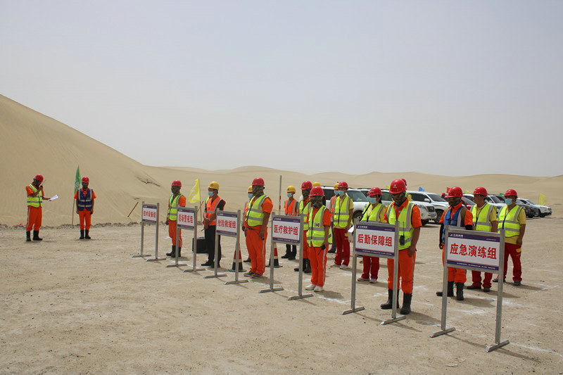 活動儀式上,項目經理對演練活動作了動員和部署,要求項目安全管理相關人員按照《應急預案活動方案》的安排有序開展各項活動,在思想上筑牢安全生產意識,全面落實隱患整改,確保公司安全生產工作平穩(wěn)運行。整場演練從沙漠發(fā)生人員走失、先期處置、預案啟動,到聯(lián)合處置、信息上報、人員搜救、應急救護,處處都展現(xiàn)出了快捷、高效、合規(guī)的特點,受到了在場各單位點評人員的肯定與好評。