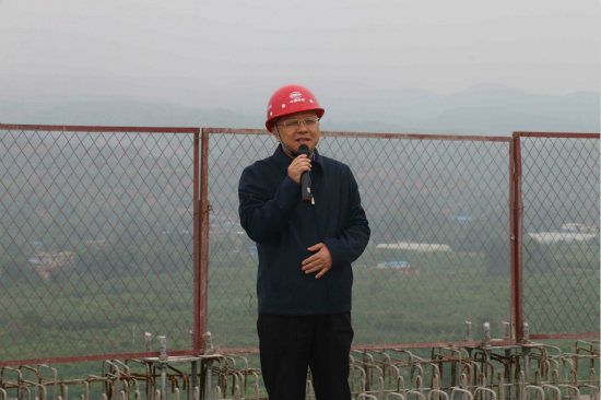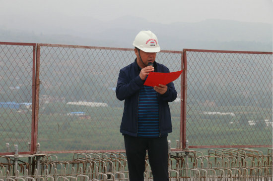 圖四、中國鐵建大橋局副總經(jīng)理、總工程師宋偉俊宣布北引橋順利貫通