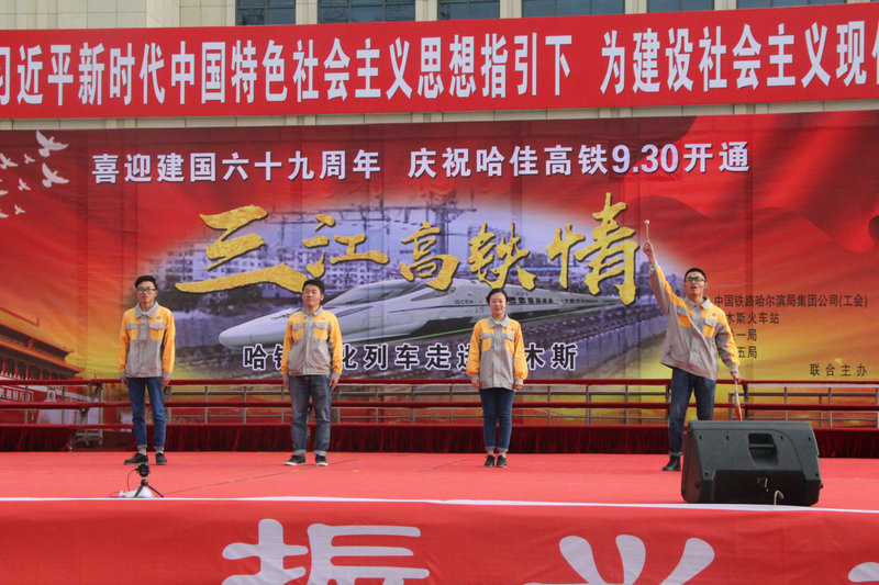 近日,鑼鼓陣陣,在歡笑聲中迎來了由哈爾濱局集團(tuán)公司(工會(huì))、哈佳公司、佳木斯站、中鐵二十三局等聯(lián)合主辦的“喜迎建國(guó)六十九周年,慶祝哈佳高鐵930開通”主題匯演。