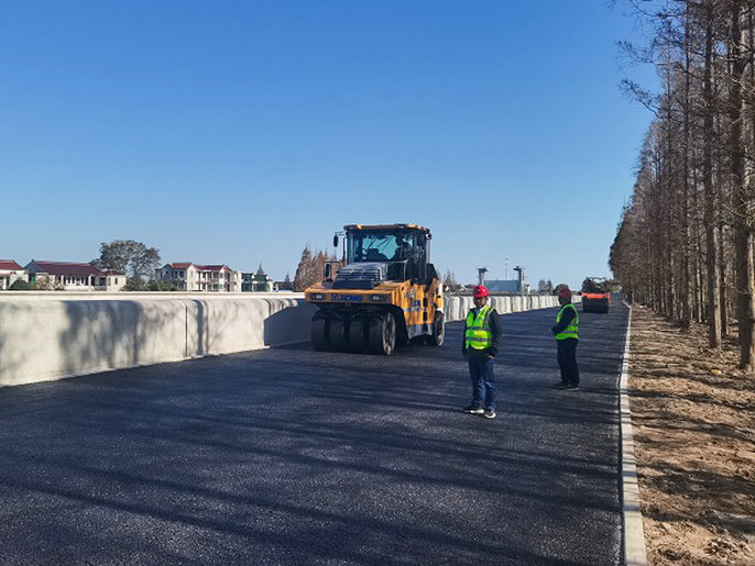項(xiàng)目負(fù)責(zé)人虞久榮表示,作為全線第一個(gè)瀝青施工點(diǎn),本次瀝青混凝土路面的開工為11月底全線堤頂?shù)缆坊就旯さ於藞?jiān)實(shí)基礎(chǔ)。