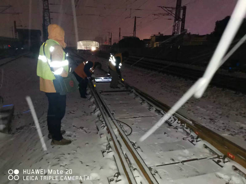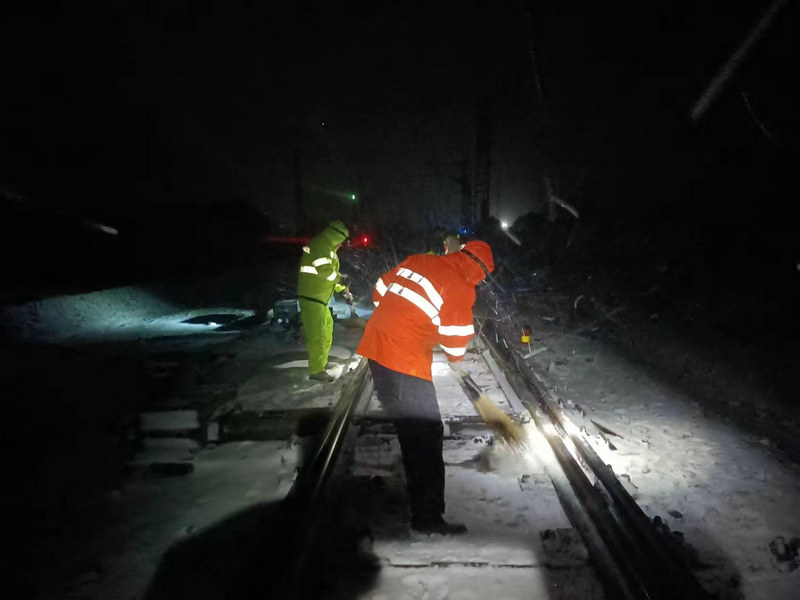 三堂集維修職工清掃三堂站道岔積雪