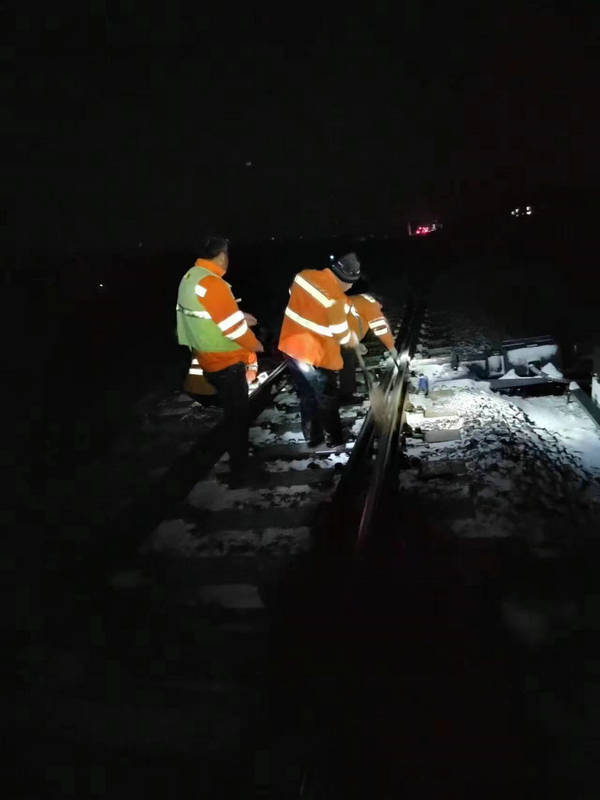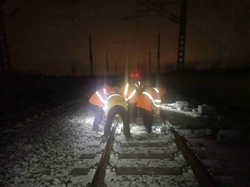 古城維修職工清掃油河集站道岔積雪