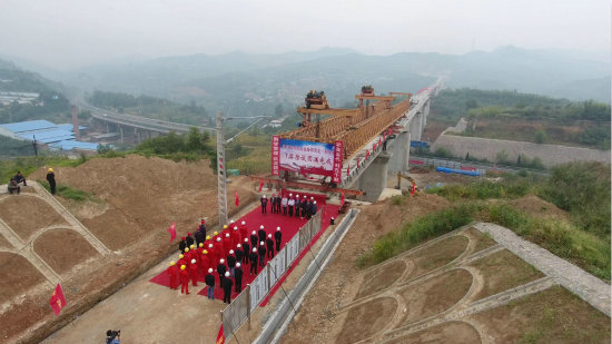 近日,中鐵建大橋工程局五公司施工的陽大鐵路項目部舉行了架梁貫通儀式,慶祝陽泉北至陽泉東432片T梁架設(shè)任務(wù)圓滿完成,這一任務(wù)的完成,標(biāo)志著陽大鐵路全面鋪軌工程正式拉開了施工序幕。