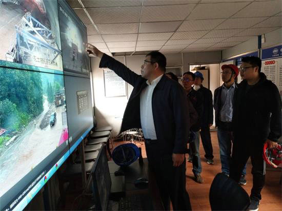 左洞掌子面9人正在立拱架、二臺階6人正在噴射仰拱混凝土;隧道右洞仰拱正在開挖,二襯臺車正在移動,6個工人正在忙碌地綁扎鋼筋......。 在該項(xiàng)目控制性工程花土坡隧道門禁系統(tǒng)及定位監(jiān)測系統(tǒng)值班室內(nèi),大屏幕清楚地顯示著洞內(nèi)各個施工場景及作業(yè)過程。畫面清晰、洞內(nèi)繁忙、施工場景一目了然。吳蘭青指著顯示屏講到:“隧道施工安全事關(guān)重大,必須監(jiān)控到位,哪里出現(xiàn)問題就得立即糾正。工程質(zhì)量關(guān)系到企業(yè)的發(fā)展,容不得半點(diǎn)馬虎。施工進(jìn)度就是施工效率,哪里脫節(jié)就要解決哪里。這套顯示系統(tǒng)既能掌握進(jìn)洞人員數(shù)量和精準(zhǔn)定位,又能縱觀全局有利于協(xié)調(diào)指揮。安全、質(zhì)量及各個施工環(huán)節(jié)更是在有效監(jiān)控范圍內(nèi)。為隧道施工安全、合理組織、工序銜接提供了最為直觀的參考和依據(jù),設(shè)備很先進(jìn)、很科學(xué),項(xiàng)目部要充分利用這套設(shè)備的優(yōu)勢,加強(qiáng)管理,提升企業(yè)形象”。