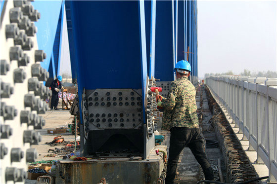 “為確保該連續(xù)梁橋各節(jié)點(diǎn)目標(biāo)順利實(shí)現(xiàn),中鐵一局鄭阜鐵路項(xiàng)目部不斷優(yōu)化施工方案,開(kāi)展多項(xiàng)科技攻關(guān),多次組織相關(guān)專家進(jìn)行技術(shù)方案研討論證,有效針對(duì)超高大節(jié)段0號(hào)塊施工、鋼桁節(jié)點(diǎn)板精準(zhǔn)預(yù)埋、超大跨度連續(xù)梁線性控制、鋼桁梁制作及拼裝等諸多困難,制定切實(shí)、可靠、安全高效的施工方案,并嚴(yán)格執(zhí)行。后經(jīng)相關(guān)監(jiān)控單位測(cè)量,項(xiàng)目拼裝完成后的曲弦鋼桁梁桁高、節(jié)點(diǎn)長(zhǎng)度偏差均在1.5毫米,主桁中心距對(duì)角線偏差2毫米,全橋鋼桁拼裝精度高,各項(xiàng)檢測(cè)指標(biāo)均符合設(shè)計(jì)要求,實(shí)現(xiàn)由“紙上藍(lán)圖”變“地上通途”。”項(xiàng)目總工程師張洪偉介紹道。
