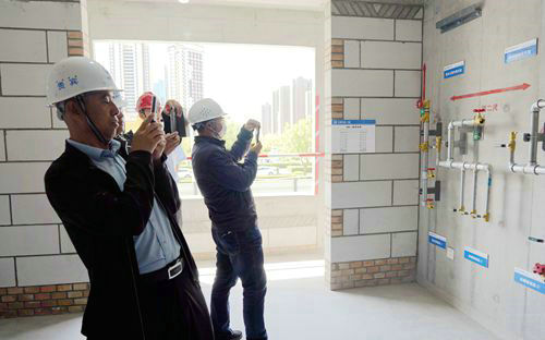 來到樓宇內(nèi)的四大“亮點(diǎn)”展示區(qū)域一一探訪,不難發(fā)現(xiàn),標(biāo)準(zhǔn)化施工、節(jié)能環(huán)保、安全、質(zhì)量管理、新技術(shù)應(yīng)用等一系列施工工藝和新技術(shù)應(yīng)用與工程建設(shè)實(shí)現(xiàn)的深度融合,正是項(xiàng)目部引來榆林市住建行業(yè)各級(jí)主管部門及建設(shè)、施工、監(jiān)理、勘察及行業(yè)協(xié)會(huì)等超500人觀摩團(tuán)嘖嘖稱贊的關(guān)鍵。