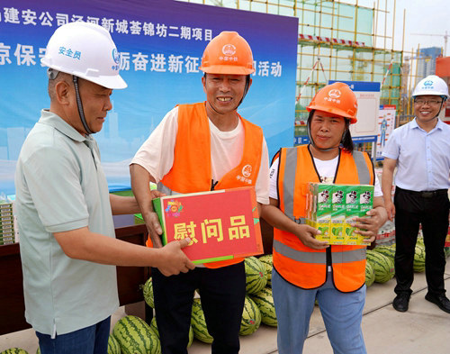 7月,炎炎夏日,驕陽(yáng)似火。西安建筑分公司所屬老舊小區(qū)、光電微波、北塬基地改造項(xiàng)目、禮泉一中項(xiàng)目、李家河復(fù)線項(xiàng)目、三原恒大及三原棚改項(xiàng)目、陜西科技創(chuàng)新谷項(xiàng)目、新路新居項(xiàng)目、中鐵卓越城等12個(gè)項(xiàng)目部相繼按照公司關(guān)于開展“夏送清涼”活動(dòng)的要求和部署,結(jié)合施工生產(chǎn)實(shí)際,與當(dāng)?shù)卣嚓P(guān)職能部門、業(yè)主及監(jiān)理等單位開展了“夏送清涼保安康 砥礪奮進(jìn)新征程”慰問(wèn)活動(dòng),為3900余名一線建設(shè)者們送去了企業(yè)的關(guān)懷和慰問(wèn)。