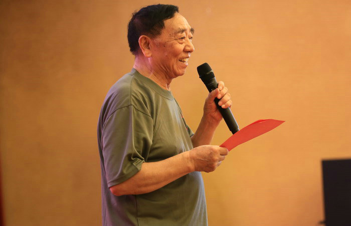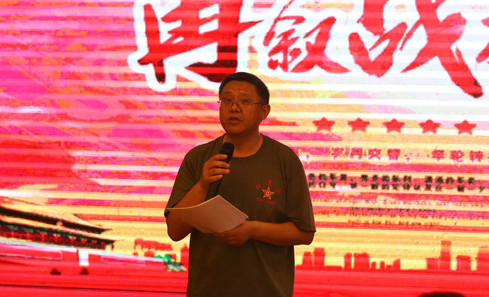 圖為原鐵道兵十師46團(tuán)后勤處處長周道成講話