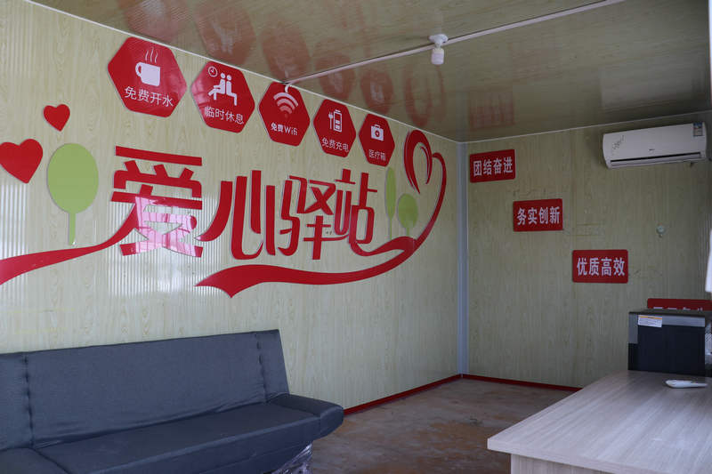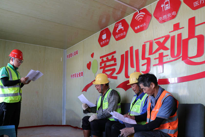 “最近都是雨季,秋夏之際的雨又是說來就來,現(xiàn)場沒有太多躲雨的地方,且現(xiàn)場器材設備較多也不安全,看著工人們辛苦工作還淋雨,我們心里面也不得勁。”安環(huán)部負責人羅萬龍說道,“如今這個愛心驛站不僅是避雨場所,還是工人的‘加油站’,大家干活都更有勁了!”