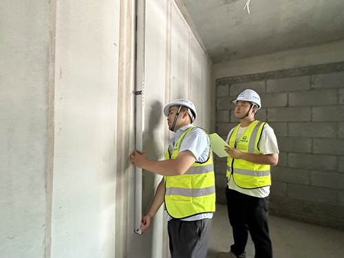 二次結(jié)構(gòu)施工以來,項(xiàng)目部統(tǒng)籌規(guī)劃明確目標(biāo)任務(wù),精心組織施工、合理安排各項(xiàng)施工工序,并嚴(yán)格執(zhí)行“樣板引路”、“首件工程跟班”、“舉牌驗(yàn)收”制度,確保二次結(jié)構(gòu)砌體、ALC施工符合規(guī)范要求。施工過程中,項(xiàng)目部堅持高標(biāo)準(zhǔn)、嚴(yán)要求,嚴(yán)把材料關(guān)、質(zhì)量關(guān)、安全關(guān),強(qiáng)化管控、細(xì)節(jié)制勝,多次開展二次結(jié)構(gòu)、ALC施工專項(xiàng)檢查,以工匠精神雕琢工程品質(zhì)。