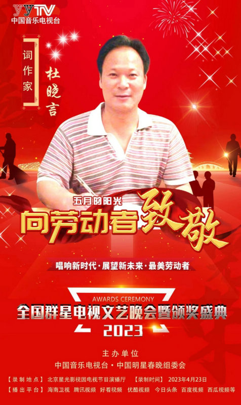 目前,項(xiàng)目處于戰(zhàn)疫情、破解難題、確保年度計劃目標(biāo)實(shí)現(xiàn)的攻堅(jiān)階段,我在做好施工新聞報道工作的同時,利用業(yè)余時間創(chuàng)作的《喜迎黨的二十大組詩》、《戰(zhàn)疫組歌》、《重慶的地鐵》、《枇杷熟了你沒有來》等歌詞和歌曲,發(fā)表中國鐵建股份有限公司網(wǎng)站、重慶市音樂家協(xié)會抗疫征歌公眾號和《重慶音樂》雜志等,有的被著名作曲家譜曲推廣演唱。項(xiàng)目部全員圍著現(xiàn)場轉(zhuǎn),瞪起眼睛排隱患保安全、搞攻關(guān)創(chuàng)優(yōu)質(zhì)、抓協(xié)調(diào)創(chuàng)高產(chǎn),干部員工敬業(yè)愛崗的精神,不僅點(diǎn)燃了我新聞采寫的熱情,也點(diǎn)燃了我歌詞創(chuàng)作的火花,所采寫的新聞稿件標(biāo)榜《中國網(wǎng)》、《百度新聞》等國家級新聞平臺,作詞歌曲《祖國,我為你自豪》榮獲2023年全國群星電視晚會金獎,這是我憑借企業(yè)的平臺,一方面用文字為項(xiàng)目服務(wù),另一方面實(shí)現(xiàn)了歌詞作家夢的夢想。