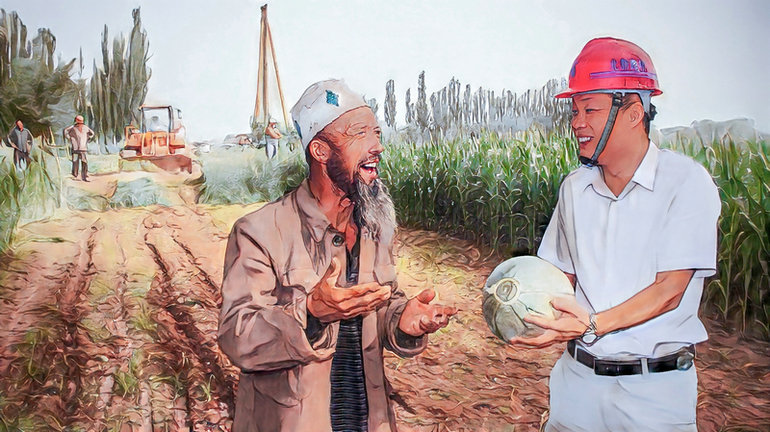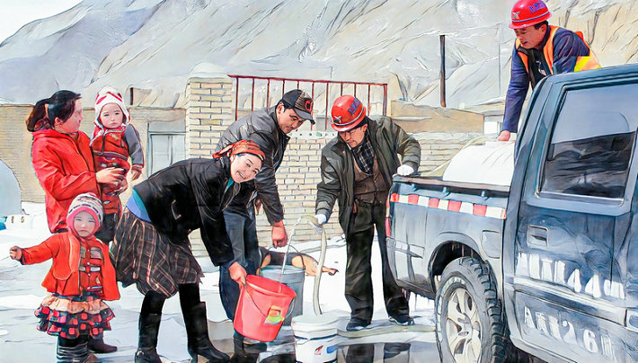 《送水》北新路橋集團(tuán)中巴公路項(xiàng)目為柯爾克孜族牧民義務(wù)送水 雒煥鼎作2017年以來,為響應(yīng)自治區(qū)號召,該公司北疆項(xiàng)目使用南疆維吾爾族富余勞動力163人,各施工項(xiàng)目以導(dǎo)師帶徒活動為抓手,由干部骨干一對一結(jié)對子,教授國語、漢字,教授施工技能,提高民族職工持續(xù)致富能力,先后培養(yǎng)出一大批民族技工骨干,實(shí)現(xiàn)了北新路橋以筑路架橋促進(jìn)地方經(jīng)濟(jì)發(fā)展,以民族團(tuán)結(jié)帶動地方百姓致富的目標(biāo)。