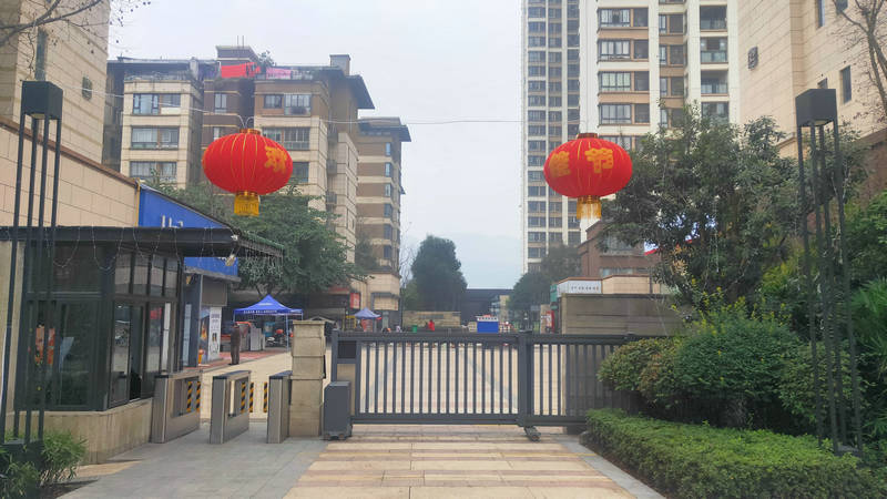 走近小區(qū)大門,首先映入眼簾的是入口上方懸掛著的橫幅“北新宜邦物業(yè)恭祝全體業(yè)主佳節(jié)如意.闔家幸福”;走進(jìn)大門,各個(gè)主門上方都懸掛著火紅的大燈籠;就連各街區(qū)大門、側(cè)門入口旁都布滿了彩燈裝飾;街邊大樹上更是繽紛璀璨,掛滿了滿天星、流星雨等彩燈飾品,到了夜間各種燈飾散發(fā)著絢麗光芒,與夜色相得益彰,處處洋溢著濃濃的年味。