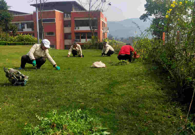 拔草時(shí)大家相互交流勞動(dòng)經(jīng)驗(yàn),“如何能夠更快速的拔草?如何能把草連根拔起?如何能更好的防止雜草的生長(zhǎng)?如何處置拔起的雜草?”大家邊勞動(dòng)邊討論,手上動(dòng)作也越來(lái)越熟練,為了更快更好的完成任務(wù),大家相互鼓勵(lì)、再接再厲。并總結(jié)出經(jīng)驗(yàn):除草時(shí)要抓住有利時(shí)機(jī)除早,除小,除徹底,不得留下小草,以免引起后患??偨Y(jié)出“寧除草芽,勿除草爺”,即要求把雜草消滅在微時(shí)。
