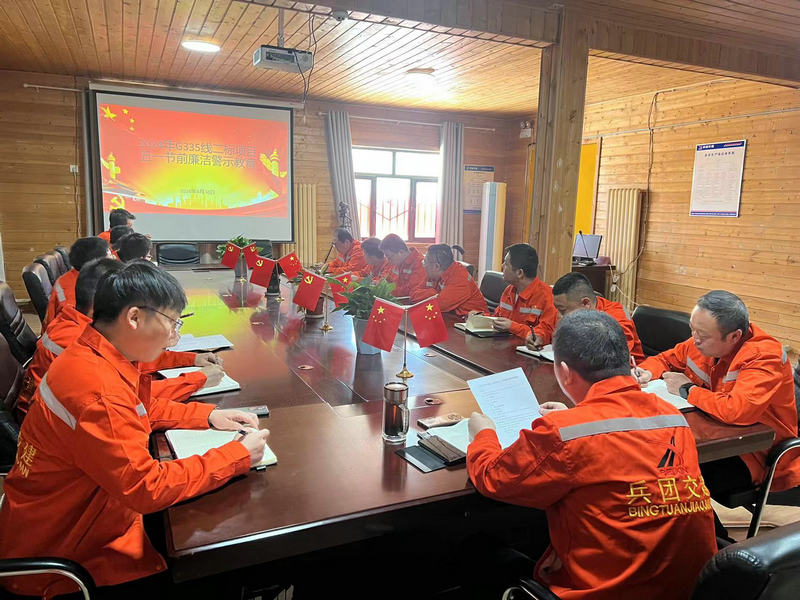 石河子訊(通訊員 李宇通)為切實增強黨風廉政建設(shè),加強黨員干部黨章黨紀黨規(guī)意識,全面筑牢項目職工拒腐防變思想防線。近日,兵團交建公司第八師G335二標148團-149團-150團公路第二標段項目組織開展“五一”節(jié)前廉政教育會。項目部全體職工參加會議。