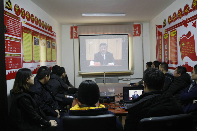 二公司哈佳項目部18名黨員聚精會神觀看改革開放40周年大會