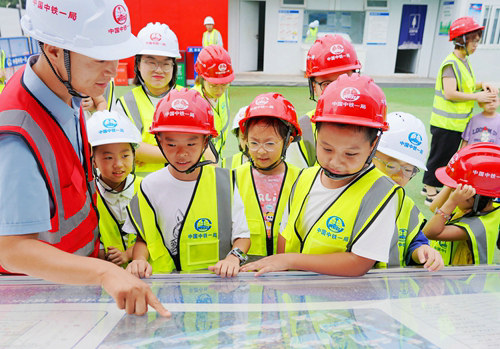 在項目會議室,項目負(fù)責(zé)人為“小候鳥”們頒發(fā)了暑期研學(xué)站結(jié)業(yè)證書。隨后一行人員在項目部工作人員的帶領(lǐng)下,來到項目部同心驛站進(jìn)行參觀,了解高樓大廈的施工原理,孩子們一邊看著樓群的規(guī)劃圖,一邊認(rèn)真地聆聽講解,時不時地還進(jìn)行提問,不斷對未知領(lǐng)域進(jìn)行探索和發(fā)現(xiàn)。